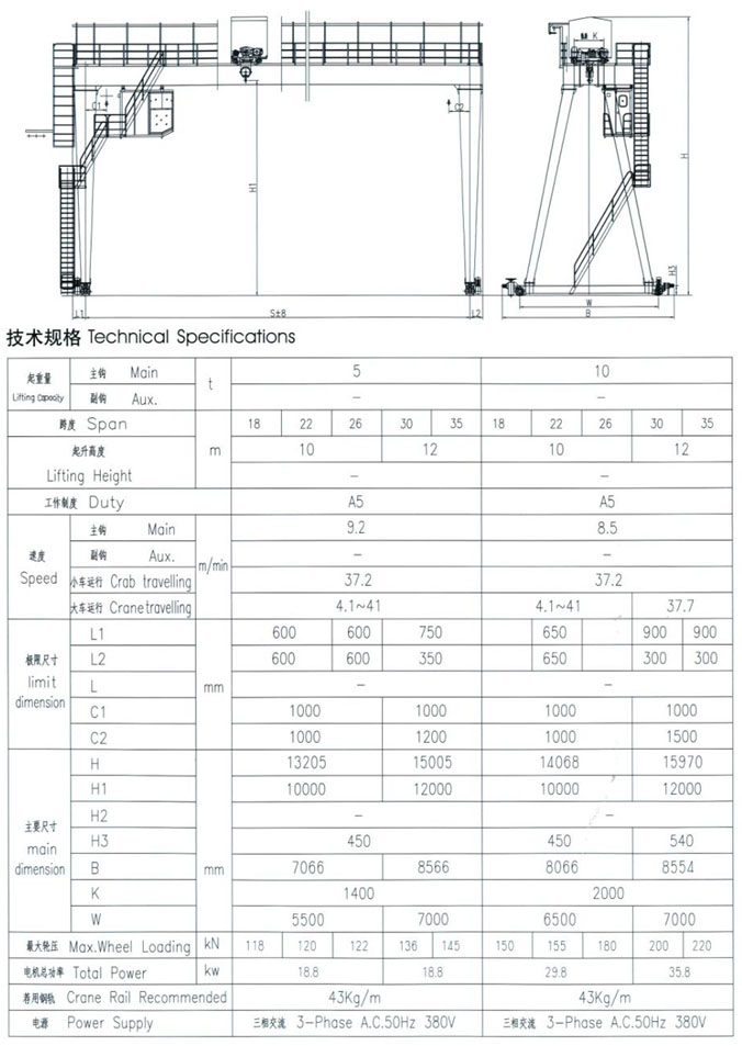 產(chǎn)品說明: 圖示為我公司為陽泉煤業(yè)集團制造的MG35/10T起重機